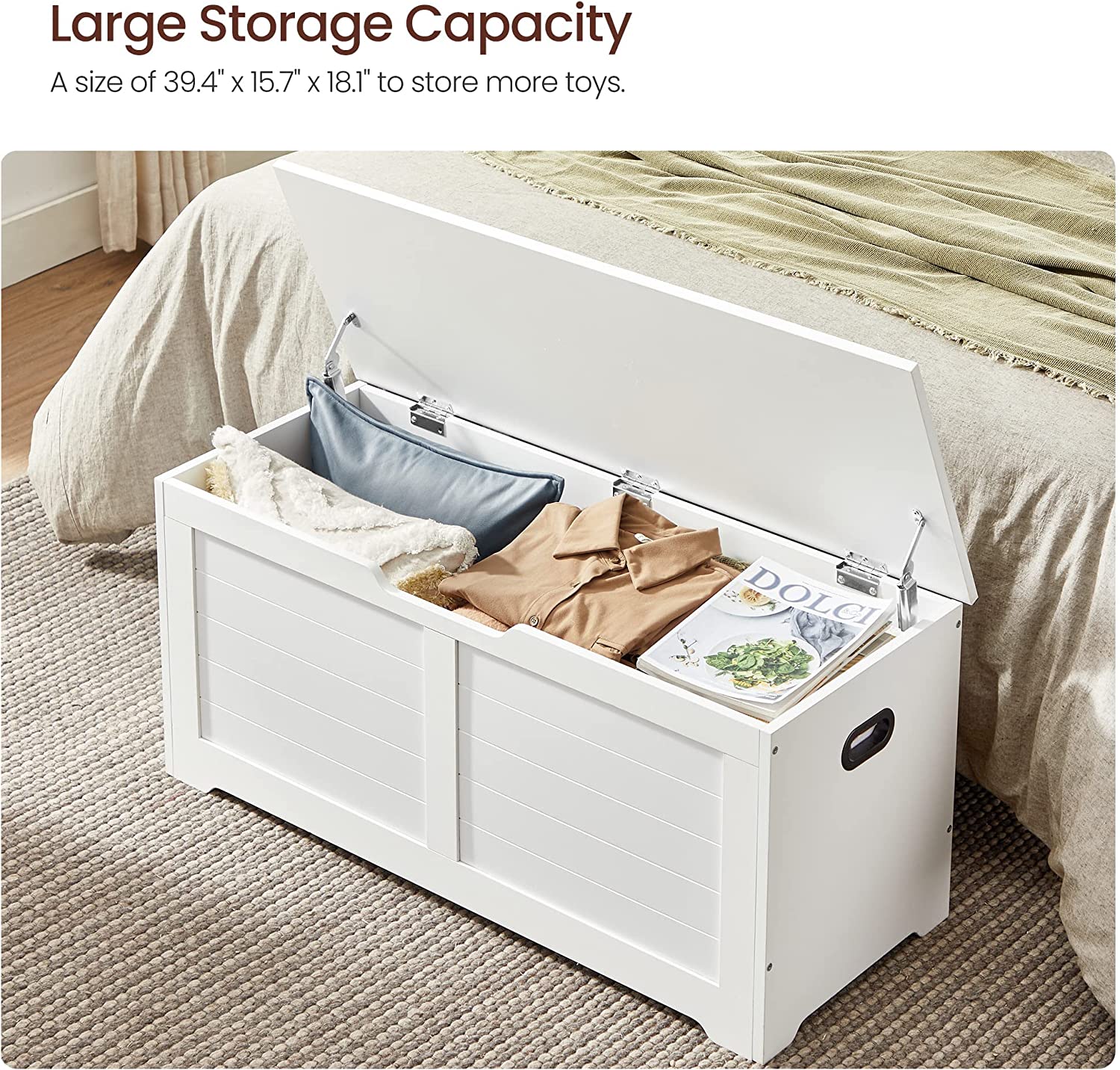 - Perfect for blankets, pillows, clothes, and books