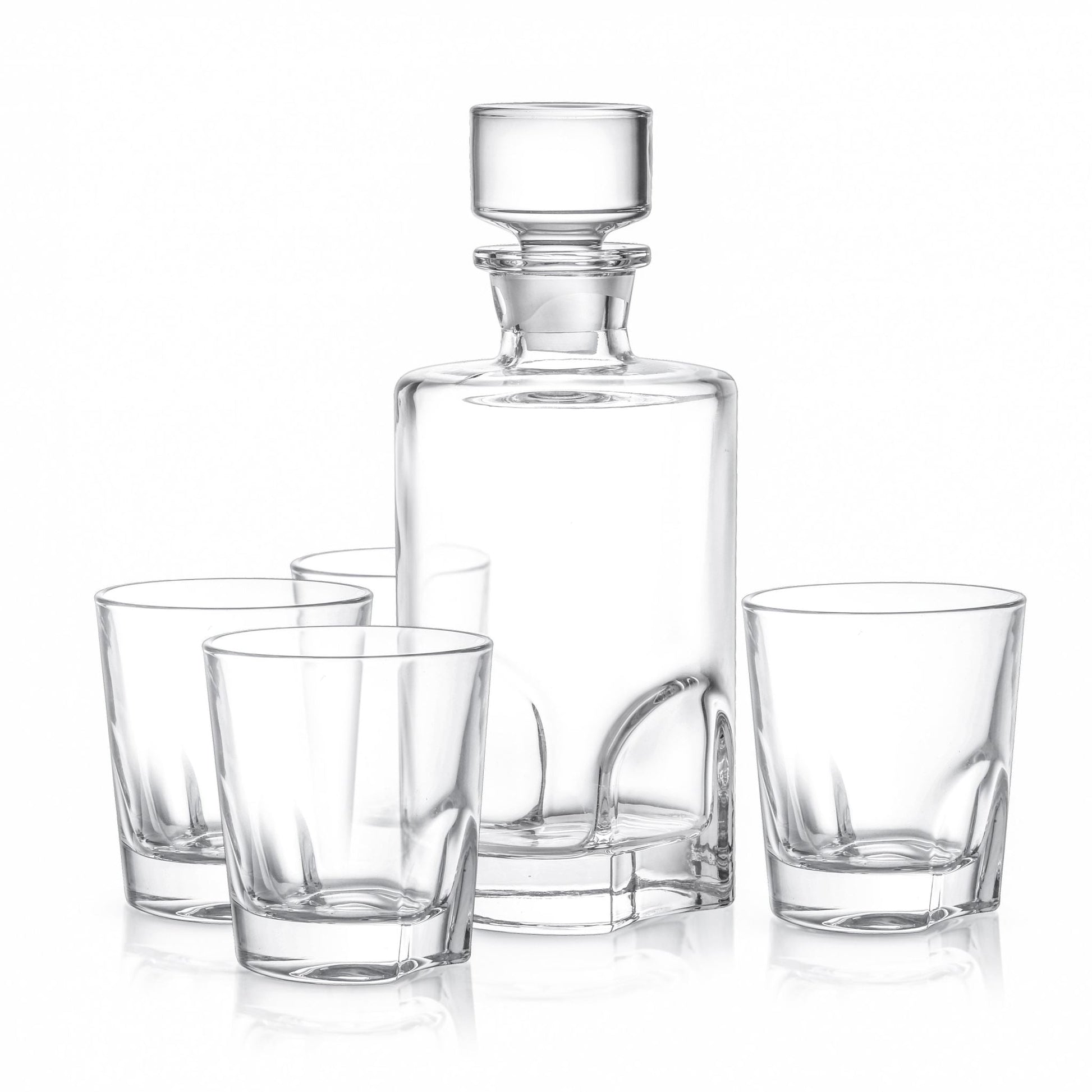 The decanter features a glass stopper with a plastic tip for an airtight seal, ensuring your spirits stay fresh. This set includes a 25.3-ounce decanter and four 8.4-ounce old fashioned glasses. The wide opening of the whiskey glass accommodates ice stones, whiskey balls, or cubes, enhancing your drinking experience.